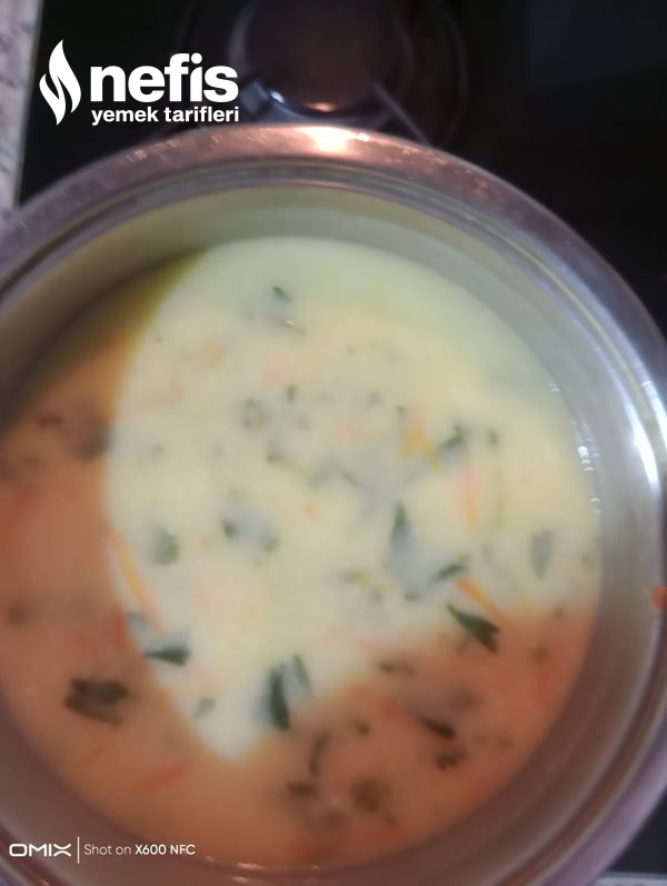 5. Bu esnada çorbaya tel şehriye ek edin ,bir kaç dakika kaynasın ,kaynayan çorbaya çorbanın suyundan terbiyesi karıştırın, yavaş yavaş terbiyemizi çorbamıza ek edin.