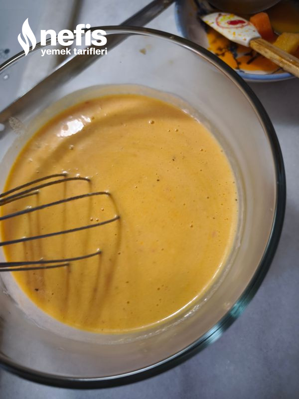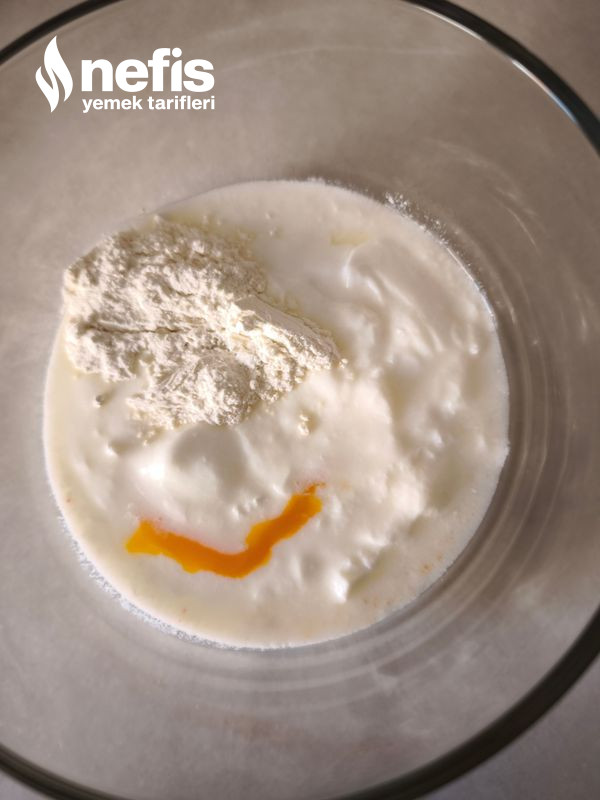 - Terbiyesi için yoğurt,yumurta ve un bir kaba alınır. Bir kepçe sıcak sudan alınır.