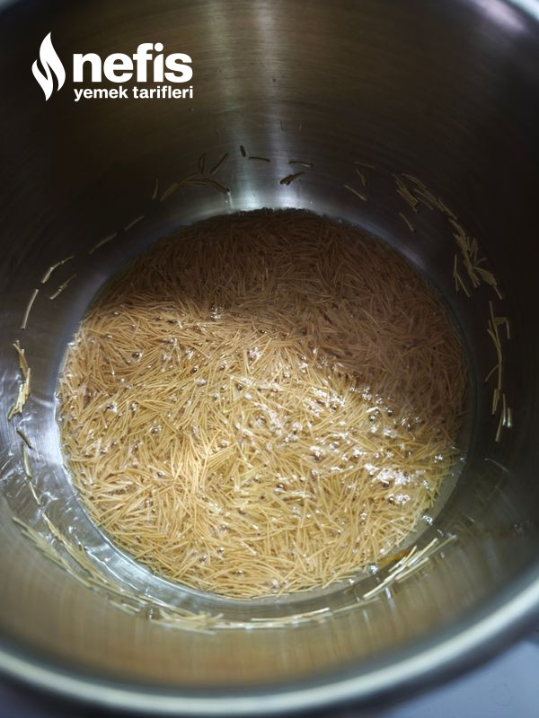 - Tencereye sıvı yağını ve tel şehriyeyi alalım.