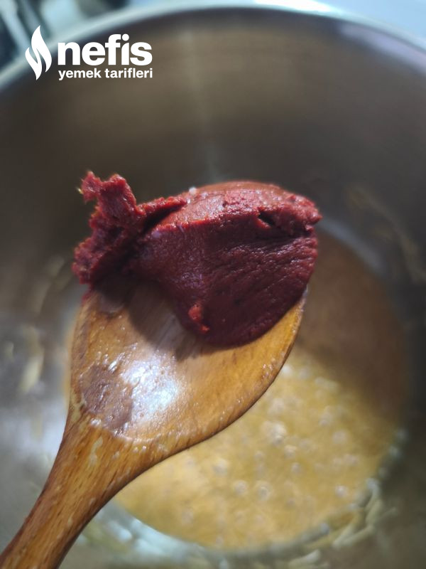 - Ardından salçayı koyalım. Bir iki dakika karıştıralım.