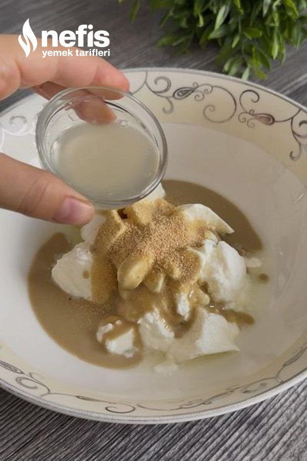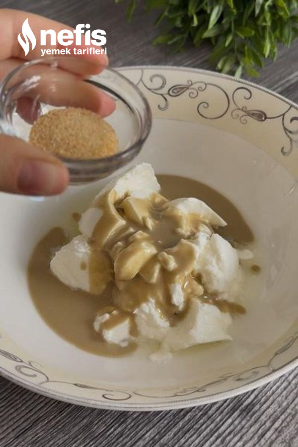 - Ayrı bir kasede yoğurt, sarımsak tozu, limon suyu, tahin ve sıktığımız marul ve maydanozu ekleyip karıştıralım.