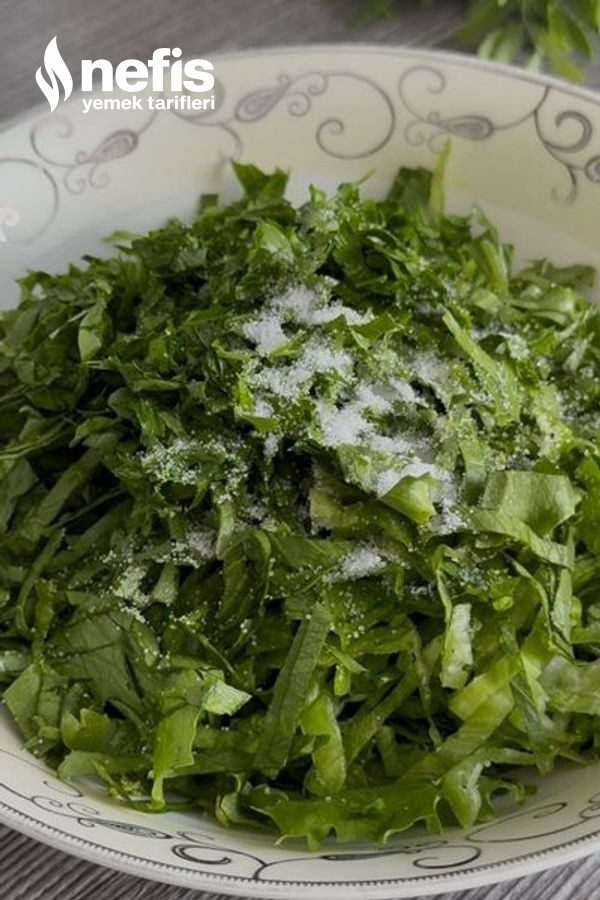 - 1 tatlı kaşığı tuz ekleyip kovalayıp suyunu sıkalım.