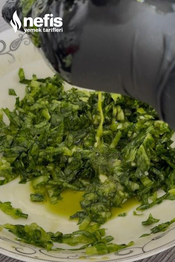- Servis tabağına alınır ve üzerine biraz zeytinyağ ve tahin gezdirelim.