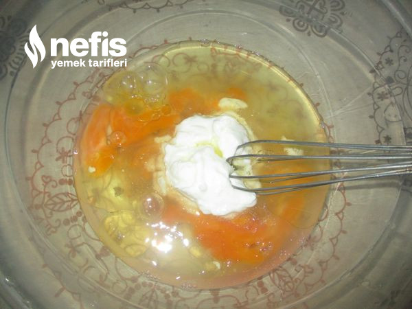 - Derin bir kabın içine yumurtaları ,suyu, yoğurt yağı ,tuzu koyalım.