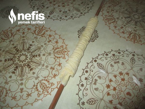- Sonra uç kısmına hamurun ince oklava koyalım.