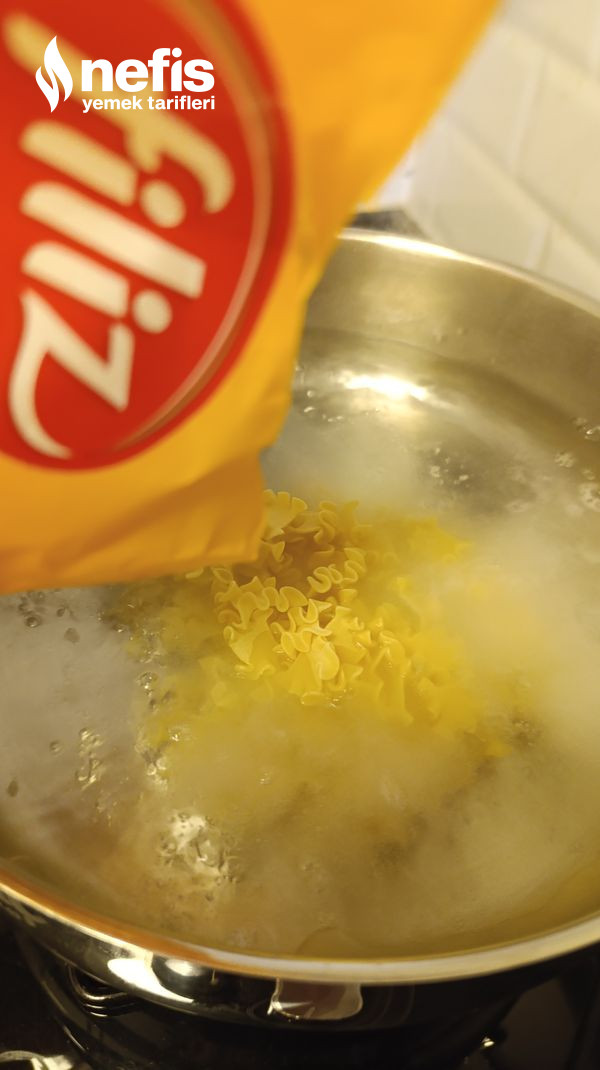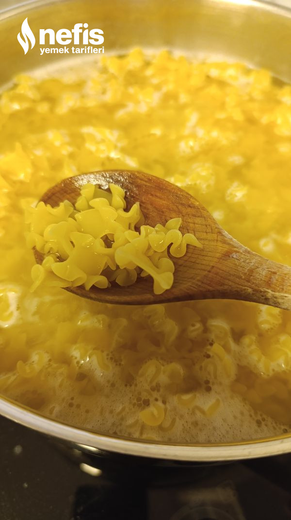 - Suyumuzu ocağa alıp kaynatıyoruz. İçine makarnamızı salıp, pişiriyoruz. Makarna piştikten sonra süzdürüyoruz.