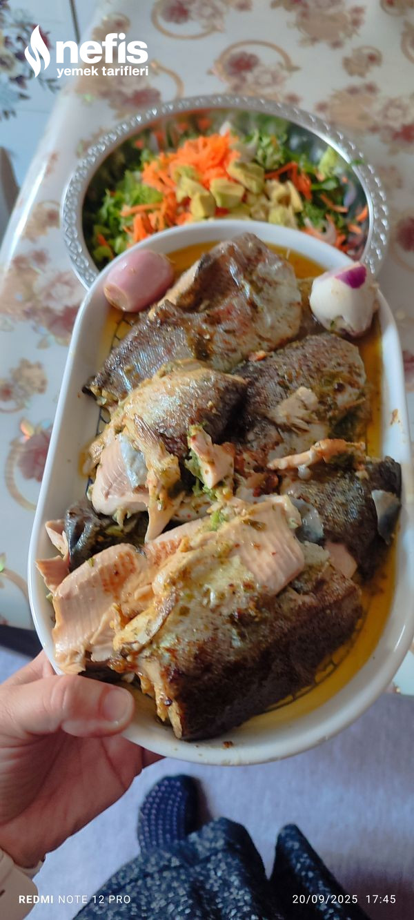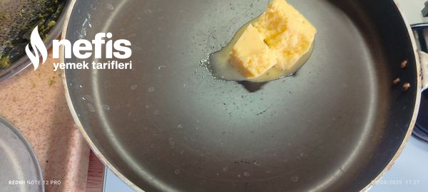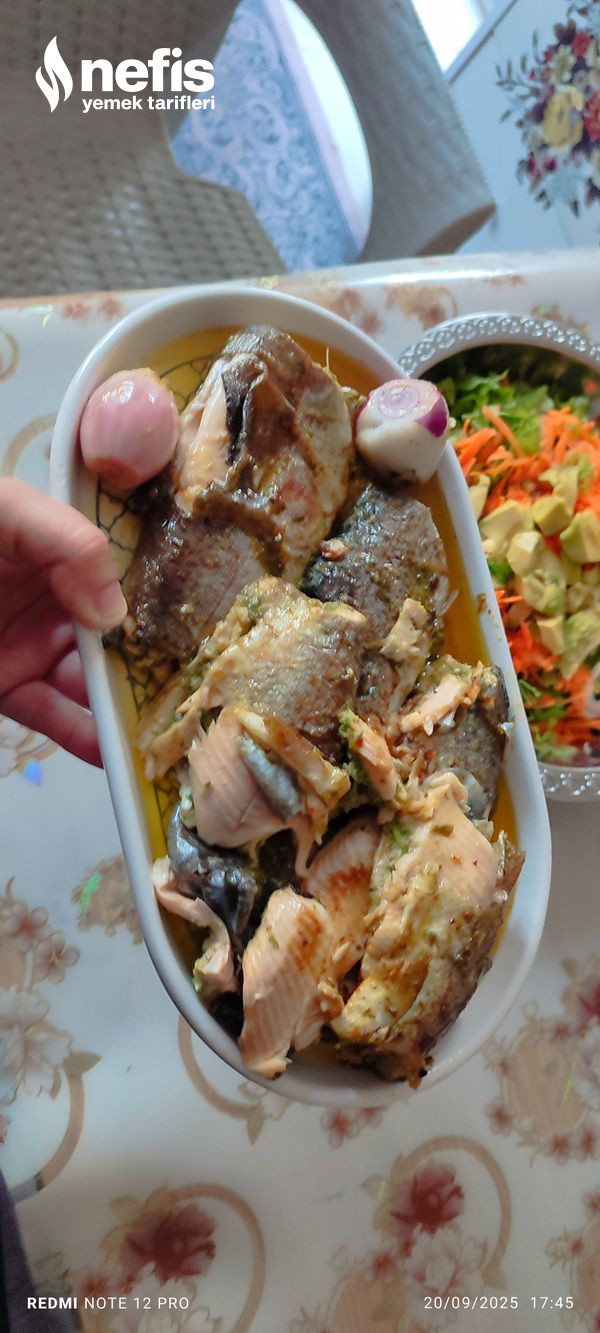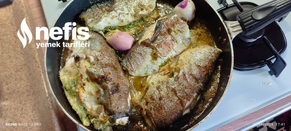 3. Tavayı ocağa alınıp tereyağ atılıp, eriyince balık dizilir ben iki küçük soğan attım altı üstü kızarınca servis edilir.