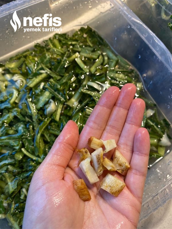 2. Köklerini de tıpkı halde küçük küçük keserek içine ekliyoruz.
