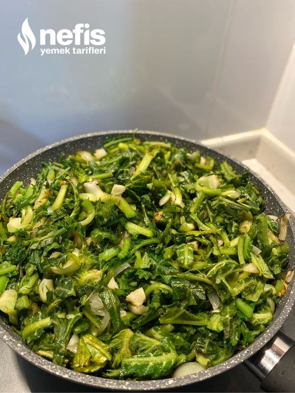 6. Biraz kavuruyoruz. Köklerine bakarak yemeğin pişip pişmediğini denetim edebilirsiniz.