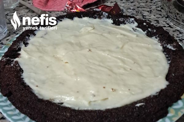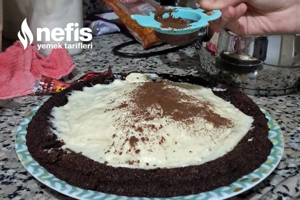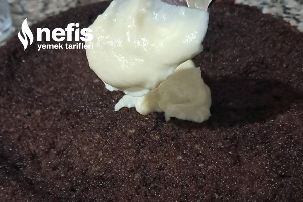 - Üzerine muhallebiyi dökelim spatula ile güzelce düzeltelim.