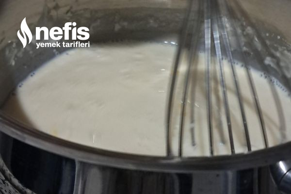 - Muhallebi için labne hariç bütün materyalleri uygun bir tencere alarak karıştıralım.