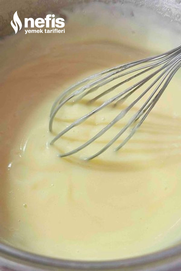 - Üzerine süt ve sıvı yağını ekleyip, çırpmaya devam edelim.