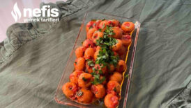 - Sonra düz bir servis kabına karşıt çevirerek alıyoruz.