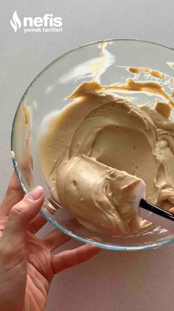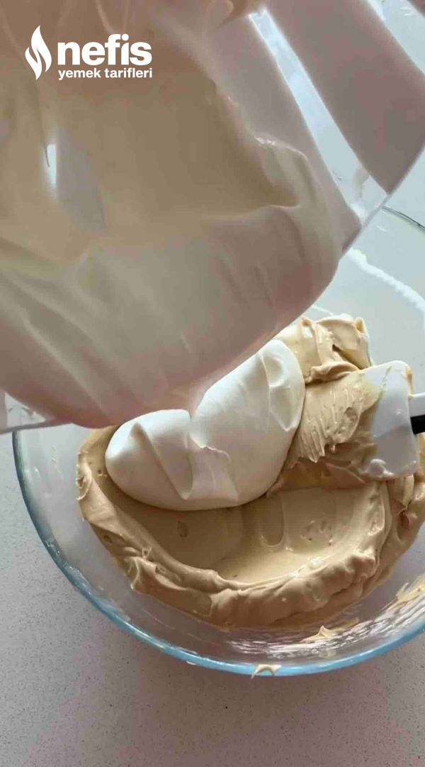 - Kremamızıda farklı bir kapta yoğunlaşana kadar çırpıp gerecimizin üzerine ekliyoruz (krema ne kadar katı olursa kıvamı o kadar hoş oluyor).