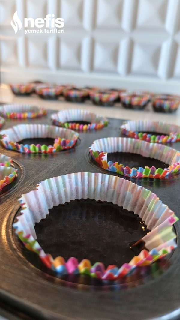 - Cupcake tepsimize kağıtları yerleştirerek yarısına gelecek biçimde kekin hamurundan ek edelim.