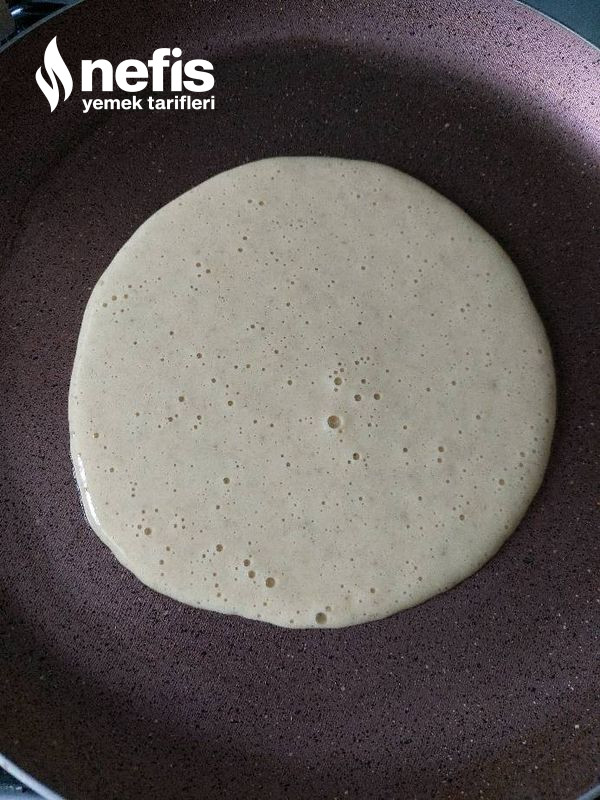 4. Yapışmaz tavaya hazırladığımız hamurun yarısını döküp kısık ateşte pişiriyoruz.