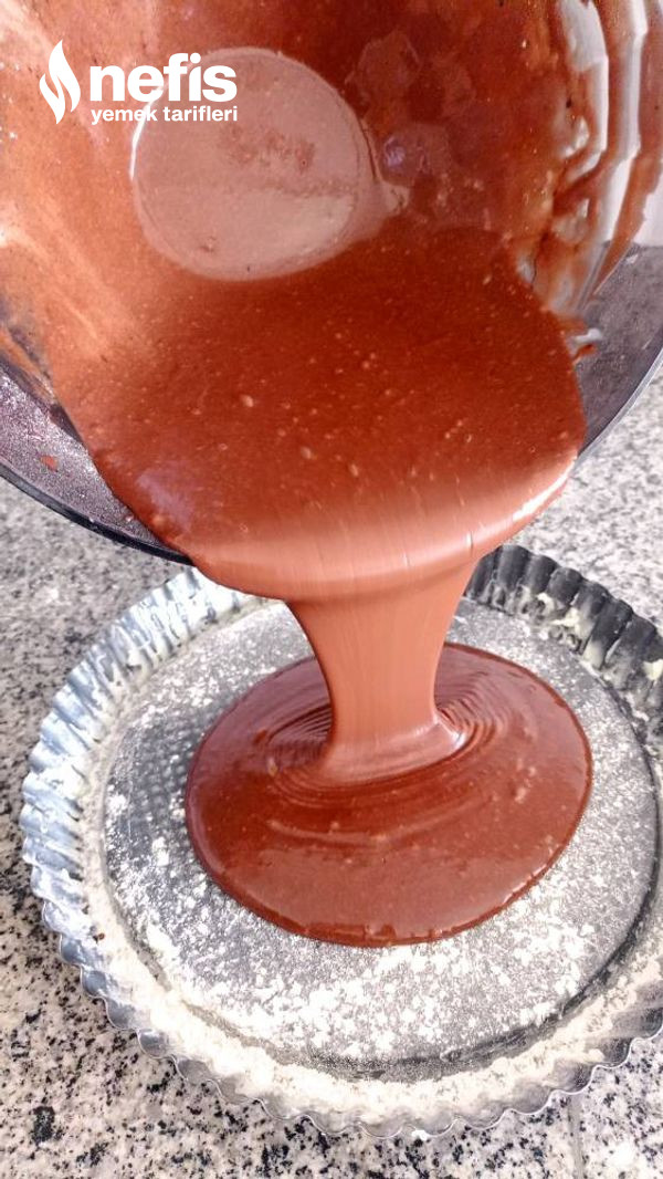 - Tereyağı ile yağlayıp un serptiğimiz tart kalıbımıza kek hamurumuzu boşaltalım.