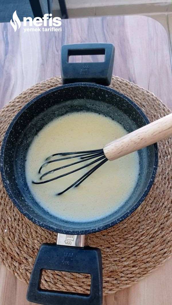 - Malzemelerimiz pürüzsüz kıvam alıncaya kadar tel çırpıcı ile karıştıralım.