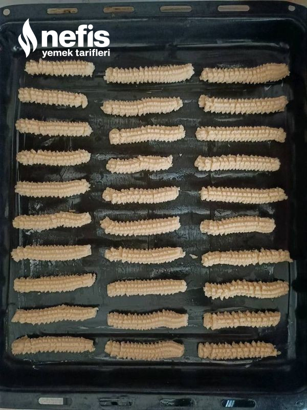 - Kurabiye kalıbının içine hamurdan koyup parmağınızla hamura bastırın, kurabiyeleri istediğiniz uzunlukta çıkartın.