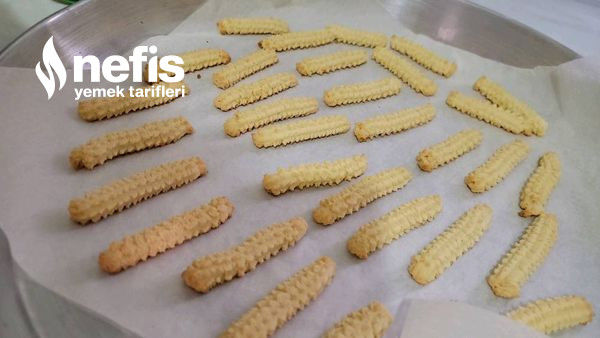- Tırtıl kurabiye kalıbının içine hamurdan bir modül alınır baş parmakla ittirilerek parmak uzunluğunda kurabiyeler elde edilir, yağlı kağıt serilmiş fırın tepsisine alınır.