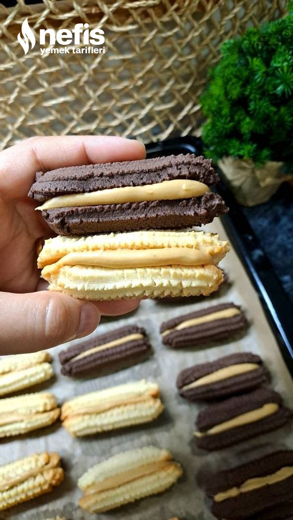6. Fırından çıkan kurabiyeler soğuyunca ortasına fıstık sürüp iki kurabiyeyi birleştirebilirsiniz benim üzere. 👌🏻👌🏻.