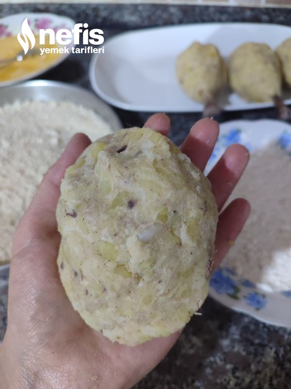 - Panesi için; yumurta, un ve galeta ununu tabaklara koyalım ve hazırlayalım.