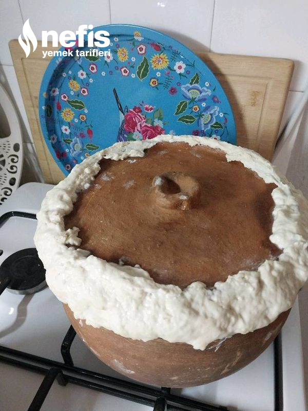 - Son olarak sıvı yağını üzerine dökelim, tuz serpelim tenceremizin ağzını kapatalım ben ağzını hamur ile kapatıyorum daha lezzetli oluyor yapanlara afiyet olsun.