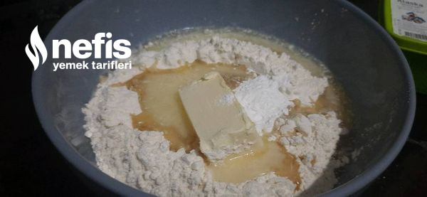- Yoğurma kabımıza un, süt ,yumurta, sıvı yağ, katıyağ ,kabartma tozu ,tuz alalım yoğuralım.