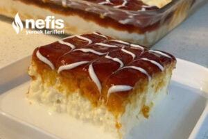 - Kek piştikten sonra güzelce soğumaya bırakın soğuyunca çatal yahut kürdanla delikler açın (sosu çekmesi için) akabinde hazırladığımız şerbeti üzerine dökün 2 dk bekleyin ki yeterlice sosu çeksin.