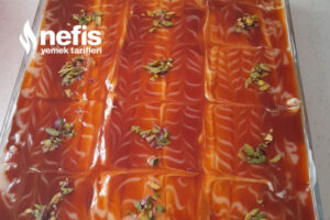 5. 200 derecede pişecek 15 dakika pişir fırından çektikten sonra 5 dakika bekleyip sütlü şerbetini döküyoruz.