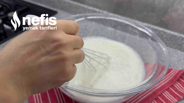 4. Kremşantiyi soğuk sütle çırpıp hazır edelim.