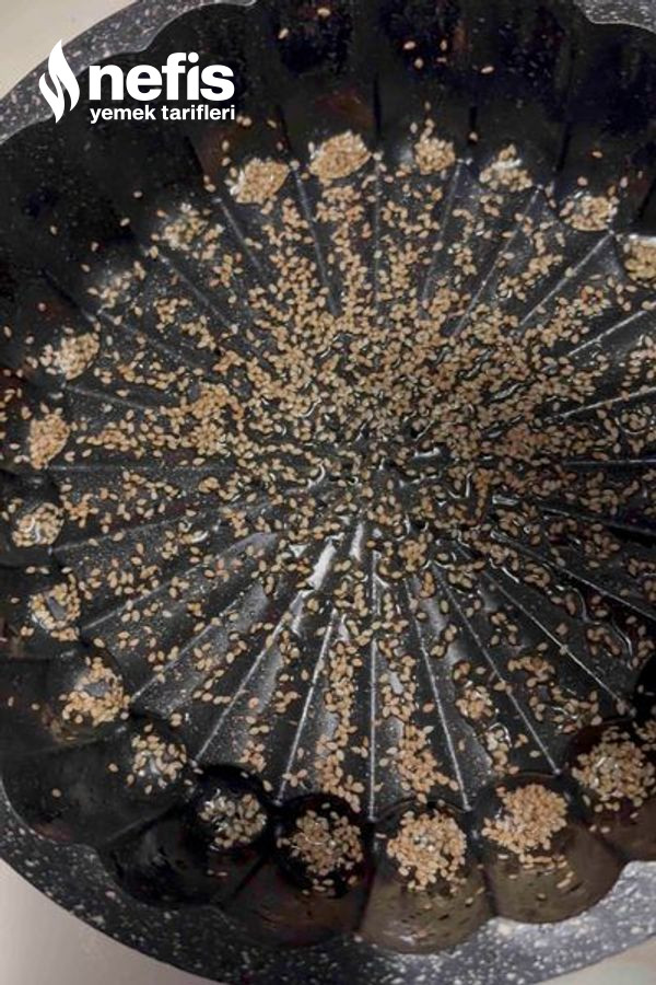 5. Yağmamış olduğunuz kalıba susam ve çörek otu serpiniz kek harcınız kalıba boşaltıp evvelce ısıtılmış 180 derelik fırında pişiniz.