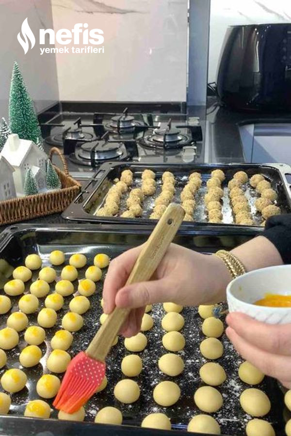 - Üzerine yumurta sarısı sürülüp 175 derecelik ısıtılmış fırında üzerleri kızarana kadar pişirilir.
