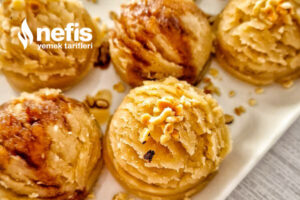 - Bir dondurma kaşığı ıslatılarak form verilir ve üzerine hurma özü,fındık fıstık vs serpilerek ılık olarak servis edilir.