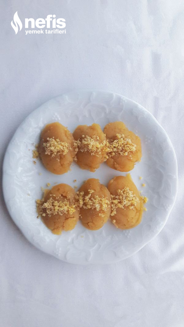 - İki kaşık ortasında form verip tabağa servis edelim. Üstüne dövülmüş ceviz parçacıkları koydum. Dilerseniz fıstık yahut fındıkta koyabilirsiniz. Afiyet olsun 🩷🤍.