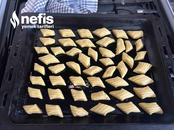 4. Hamurdan ceviz büyüklüğünde modüller alıp ister klasik yuvarlak, ister çatalla hafif bastırarak desen ver, istersen de rulo yapıp verev kes.