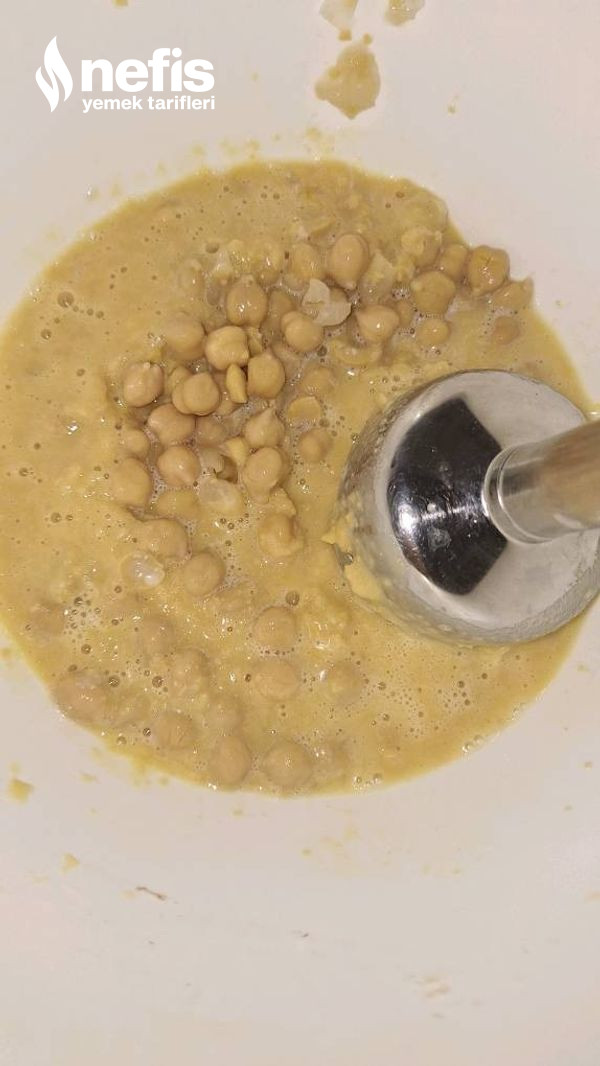 1. Haşlanmış nohut ,yoğurt ve yumurta blander ile güzelce ezilerek kek hamuru kıvamına getirilir.