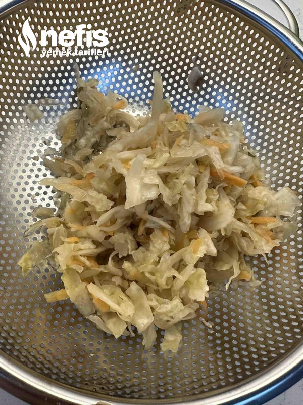 - Lahana turşusunu evvelden fazla tuzunu suda bekletip süzüyoruz ve gereçlere ekliyoruz.