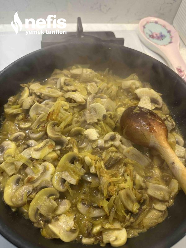 - Dikey doğradığımız mantarları tavaya ek edip biraz soteliyoruz.