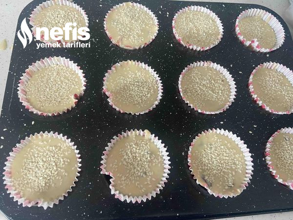- Muffin kalıplarına paylaştırılarak üzerlerine susam eklenir ve evvelden ısıtılmış 180 derece fırında yaklaşık 20 -25 dakika pişirilir .