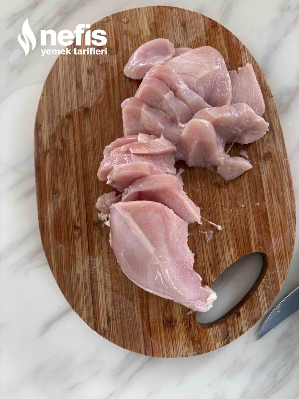 - Tavuk göğsünü parmak kalınlığında doğrayınız.