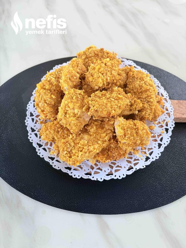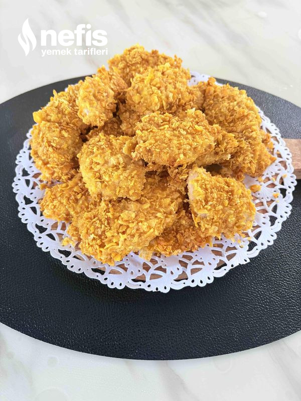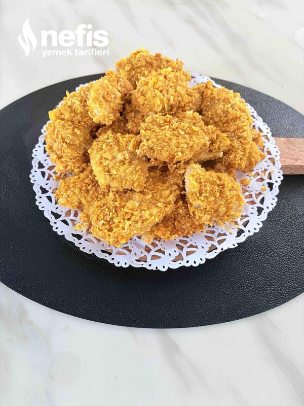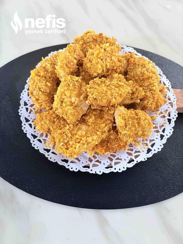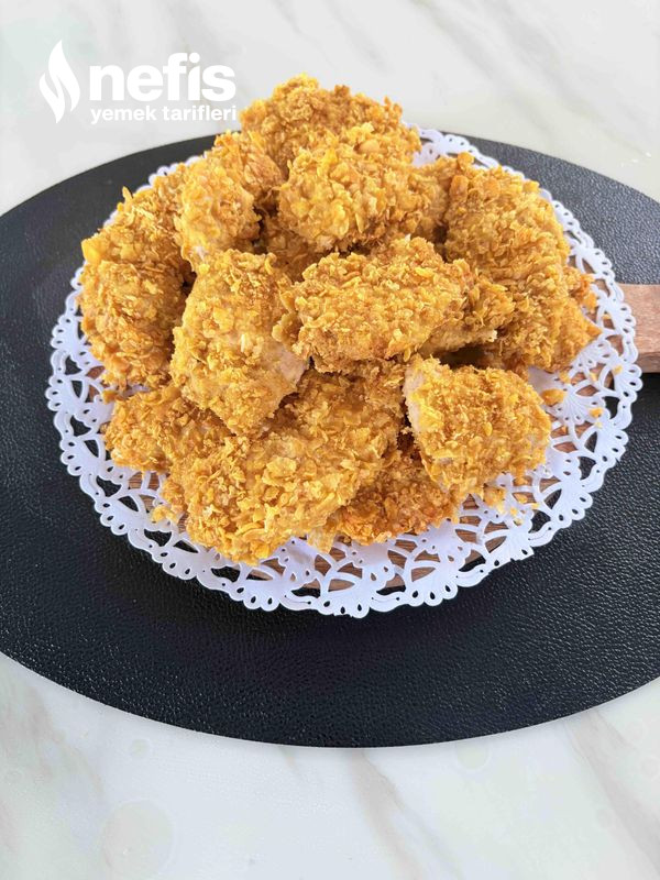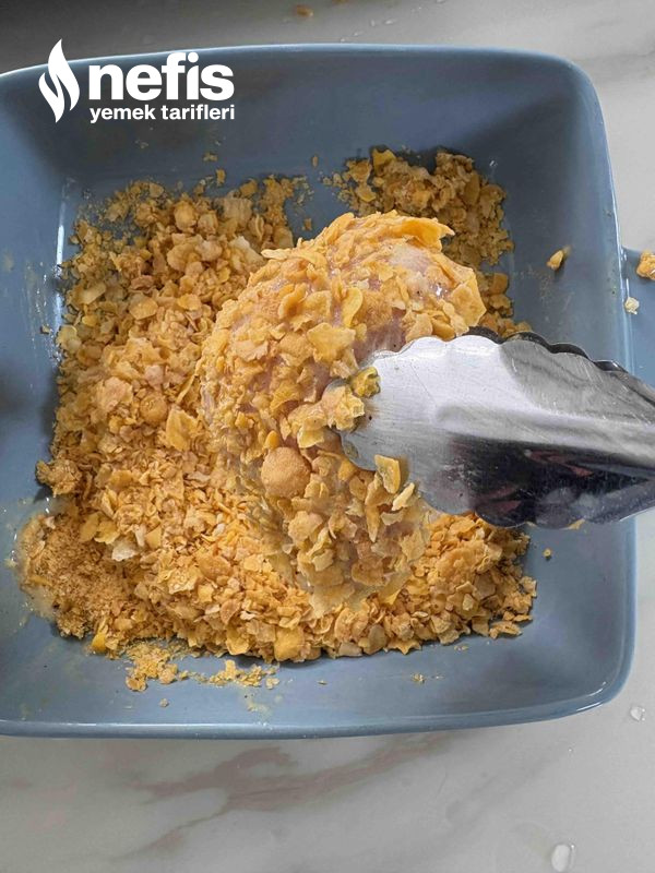 - Sonra mısır gevreğini rondodon fazla inceltmeden çektiriniz. Soslamış olduğunuz tavukların mısır gevreğine bulayıp, yağlı kağıt sermiş olduğunuz tepsiye diziniz.