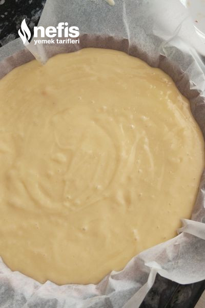 - Tart kalıbına ben yapışmasın diye yağlı kağıt koyup üstüne gereçleri ekledim.