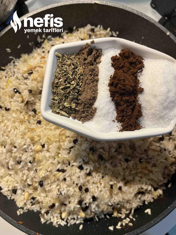 - Üzerine kuş üzümü ve pirinçlerimizi ekleyelim.
