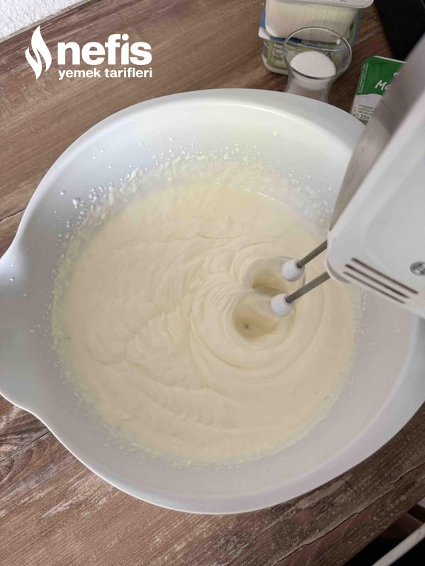 - Tam kıvam almadan evvel labne, şeker ve vanilya şekerini ekleyip devam çırpın.