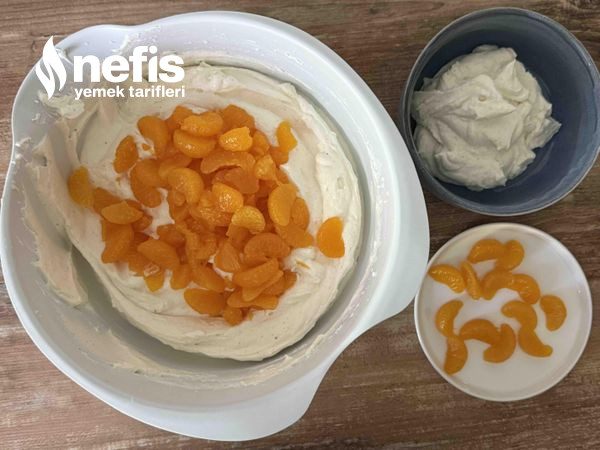 - Geri kalan mandalinaları kremanıza ekleyip spatula ile güzelce karıştırın.