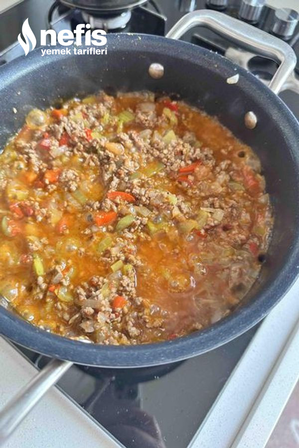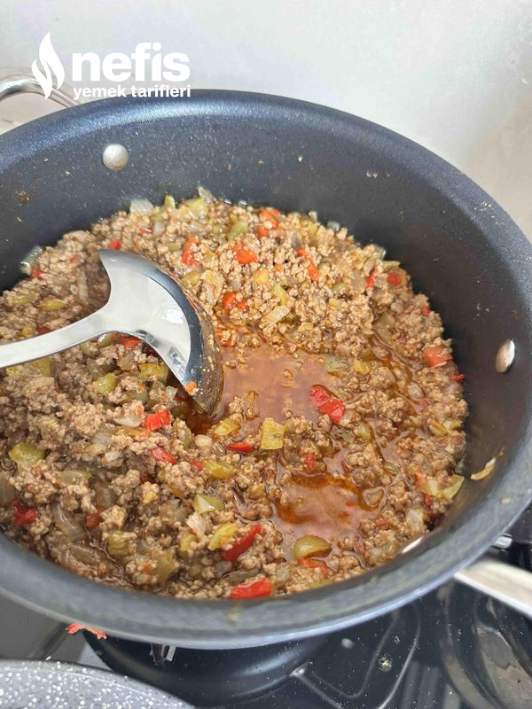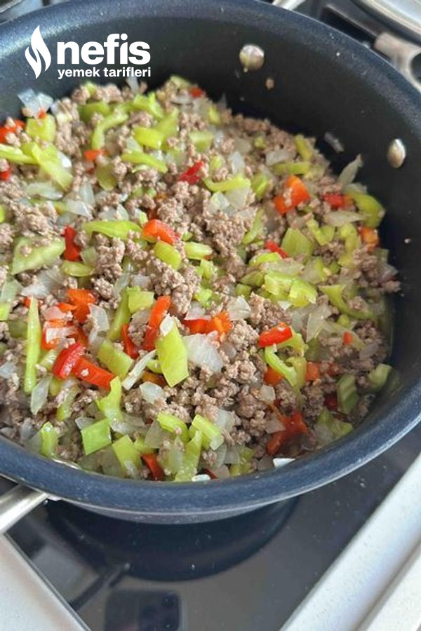 - Tencereye yağımızı alalım ve kıymayı eze eze kavuralım pişince tane tane olması için.