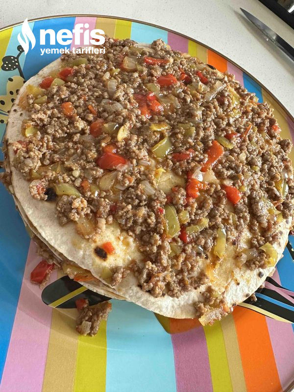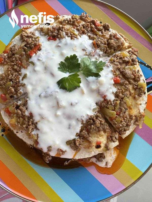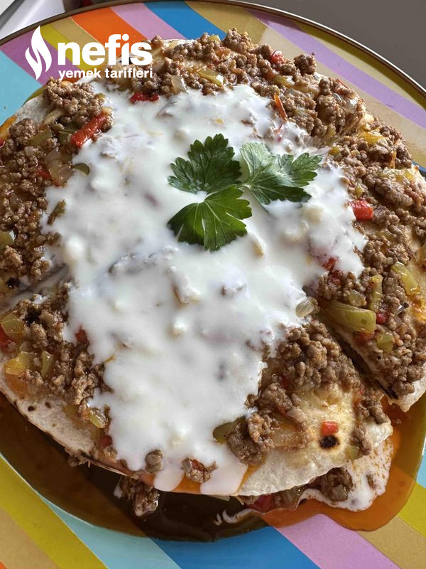 - Sonrasında lavaşı tabağa alıp üzerine hazırladığımız içten koyalım.