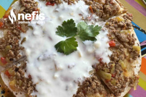 - Sonrasında lavaşı tabağa alıp üzerine hazırladığımız içten koyalım.