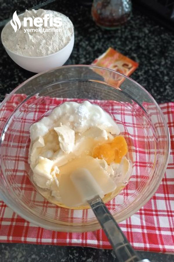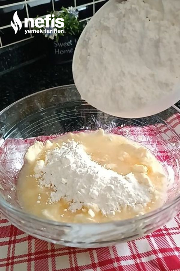 - Ardından unu ve kabartma tozunu ek edip ele yapışmayan orta yumuşaklıkta bir hamur yoğuralım.